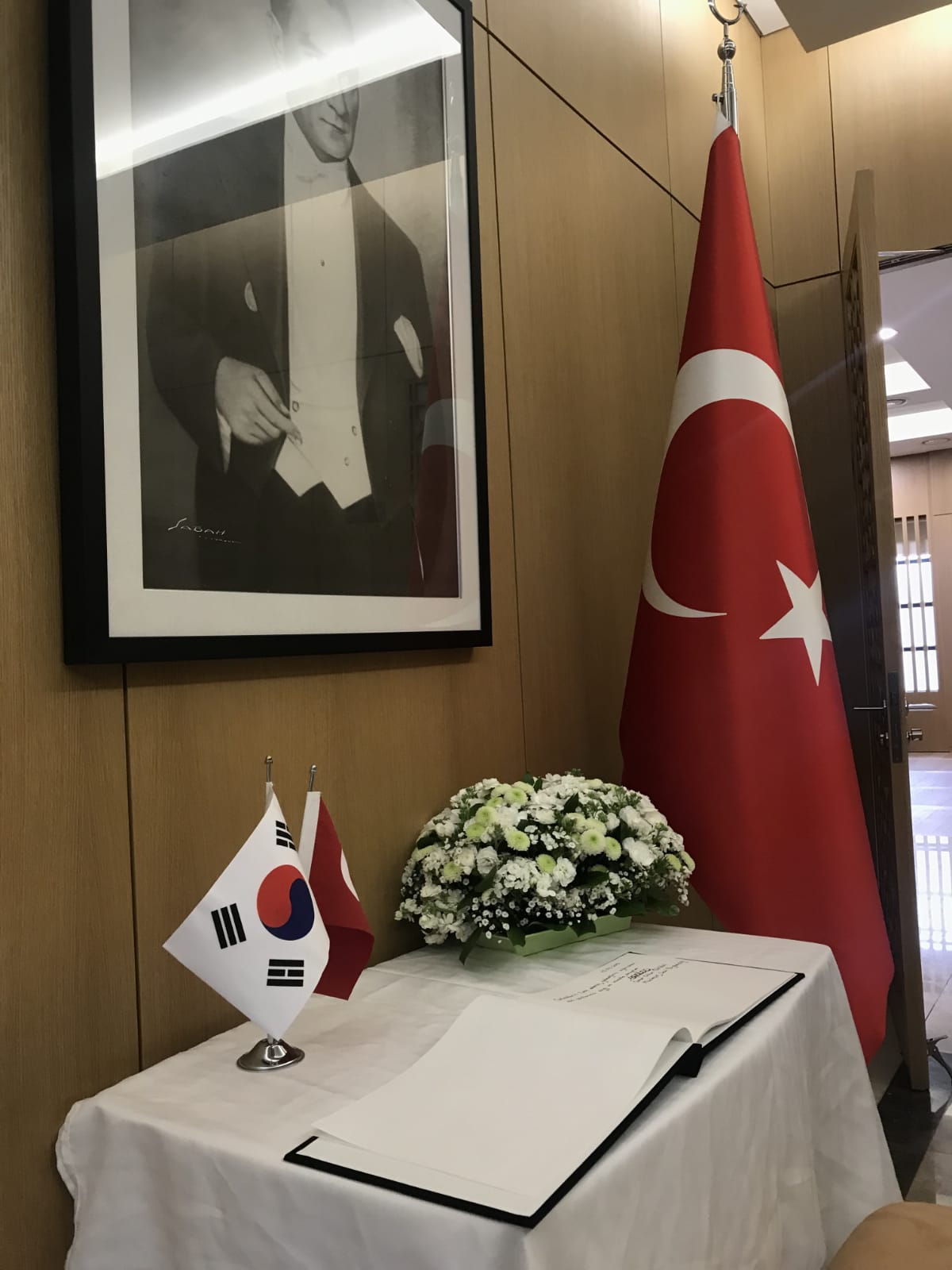 18 Mart ŞehitleriAnmaGünüve Çanakkale Zaferi'nin 104. yıl dönümü vesilesiyle Büyükelçiliğimiz mensupları, Kore-Türkiye Dostluk Derneği üyeleri, Kore Savaşı sırasında Türk askerleri tarafından kurulan Ankara Okulu'nun mezunları, Yunus Emre Seul Ofisi ile Cumhurbaşkanlığı Yatırım Ajansı Seul Ofisi yetkilileri ve vatandaşlarımızın katılımıyla Büyükelçiliğimizde bir anma töreni düzenlenmiştir.